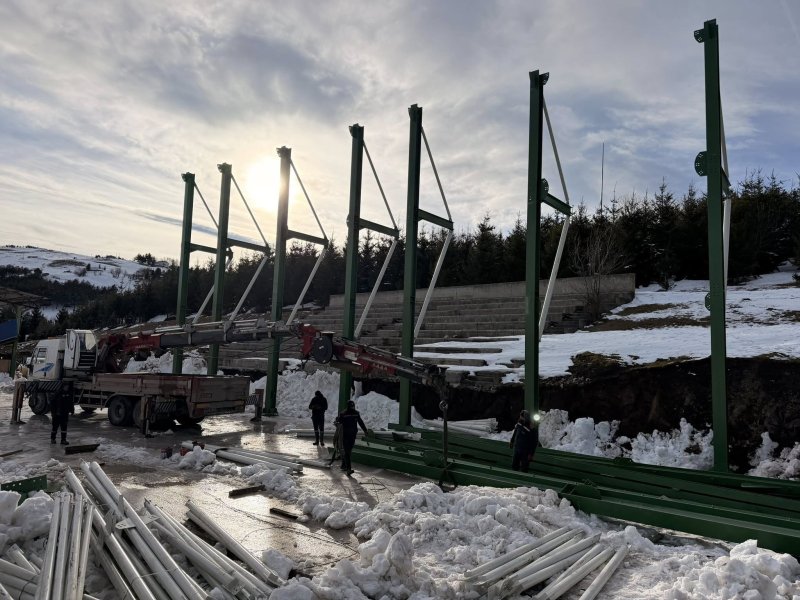 Aybastı’mızın incisi, ülkemizin eşsiz doğa harikası Perşembe Yaylası’nda bulunan tarihi er meydanımız için planlanan ek tribün ve sosyal donatı alanlarının çelik bağlantı çalışmaları tüm hızıyla sürüyor. Kar kış demeden çalışmalarımız devam ediyor.